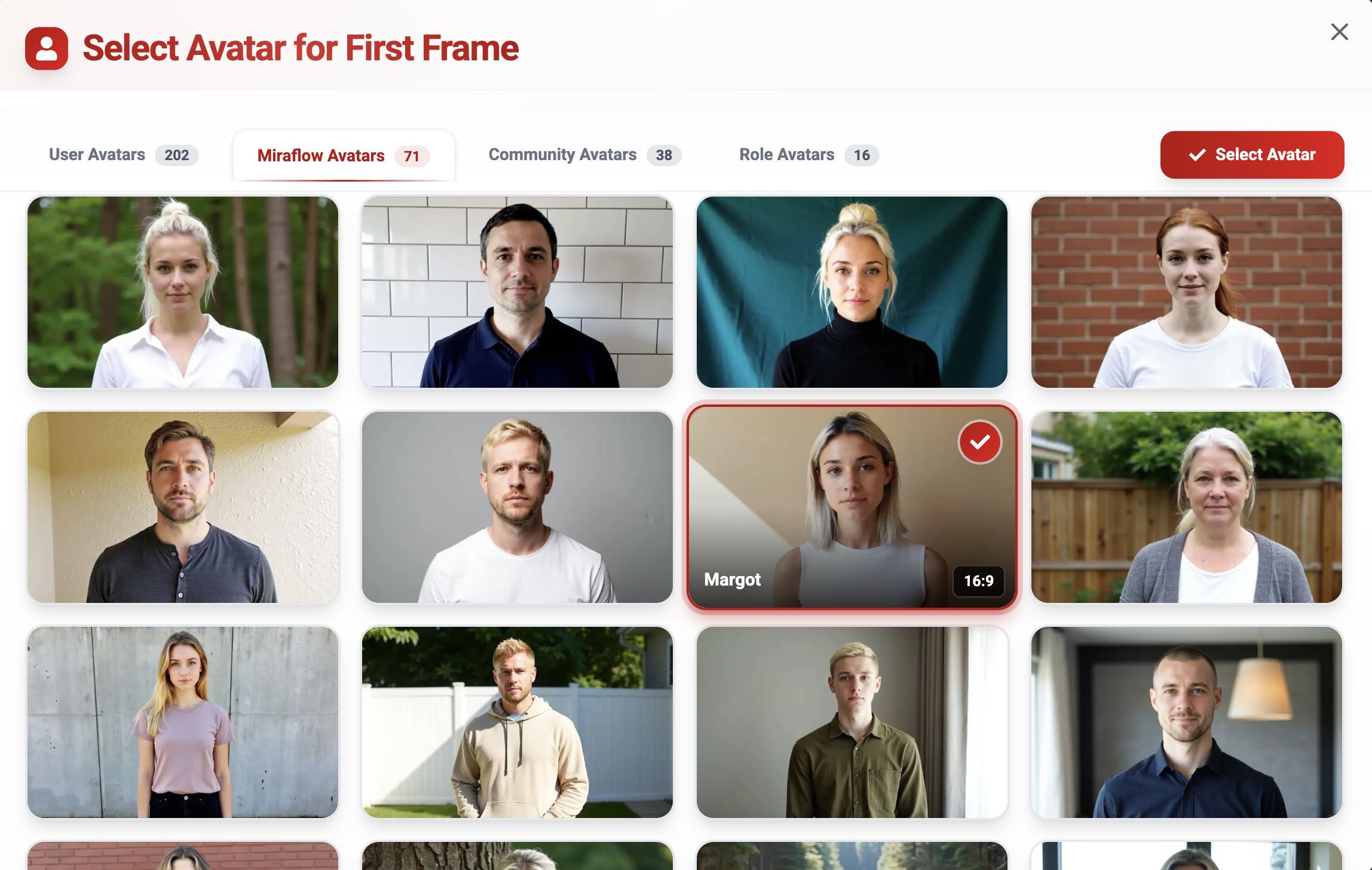 There are over 100+ avatars available, and whichever one you choose will be used as the first or last frame of your cinematic video.
