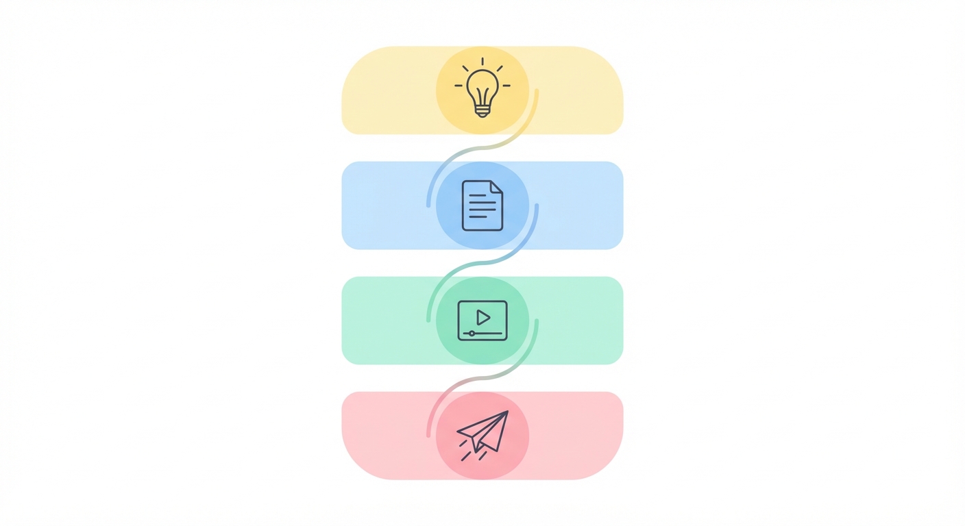 Idea → AI scripting → AI visuals → Publish → Learn → Refine prompt → Repeat